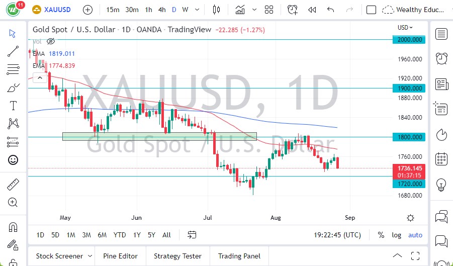 - Gold markets got hammered during the trading session on Friday after Jerome Powell gave a very hawkish speech at Jackson Hole. At this point, the US dollar looks like it’s reasserting its dominance, and that of course he’s going to have a major influence on where we go next.